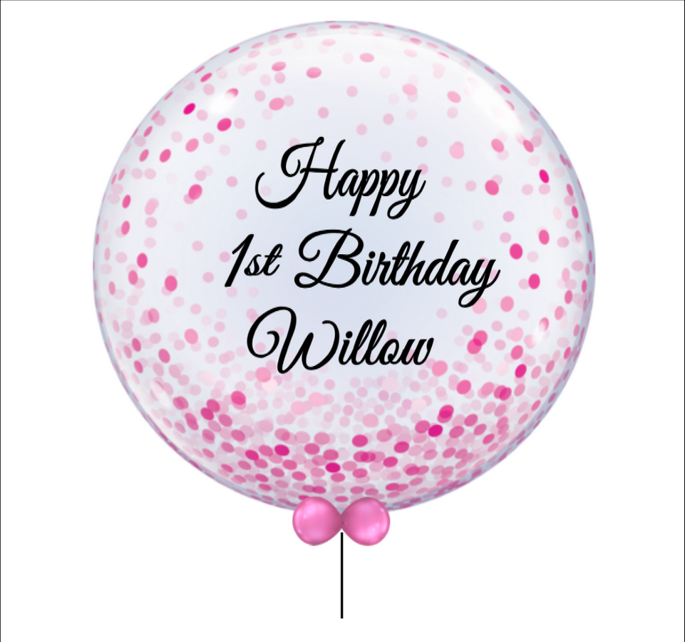 Personalised Round 60cm Bubble Pink Confetti Print Balloon